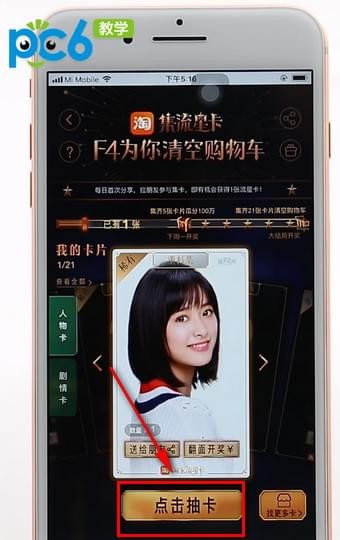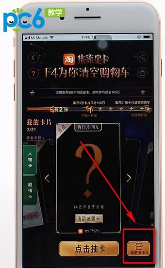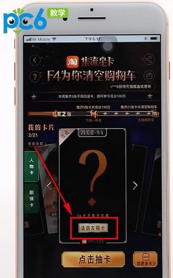 3.另外就只能通过“点击抽卡”和“请朋友赐卡”来获得。