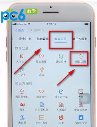 1.首先打开支付宝,然后在教育公益栏目中找到蚂蚁庄园,