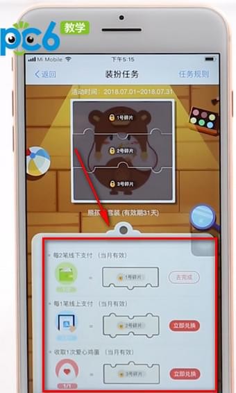 3.没有领取过花呗套装的用户需要先做任务来兑换套装,领取套装后直接点击就能换上花呗套装了。