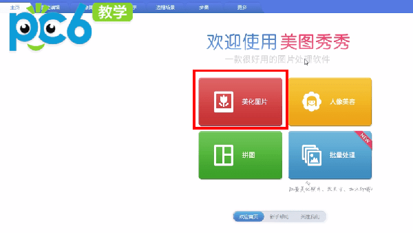 在电脑上打开美图秀秀,然后点击“美化图片”;