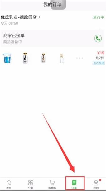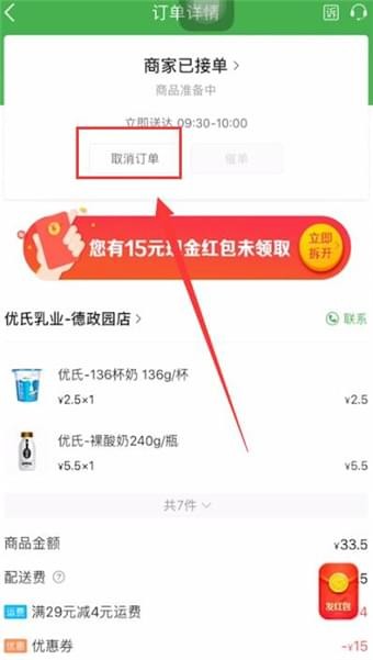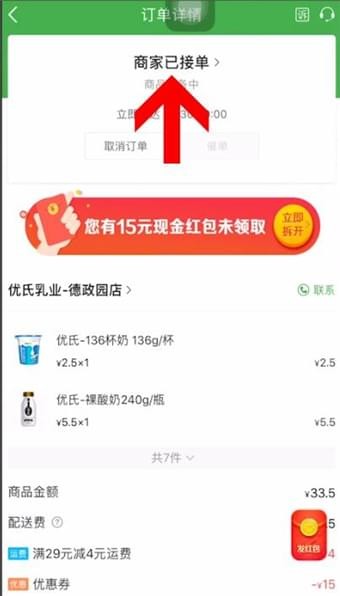 然后点击查看订单详情,这里显示商家已接单,但还未配送
