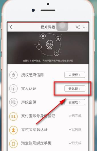 4.其次,补全身份信息,比如实名,比如授权芝麻信用、实人认证等等。