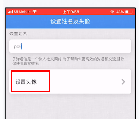输入姓名,点击【设置头像】,选好图片后点击【选取】;