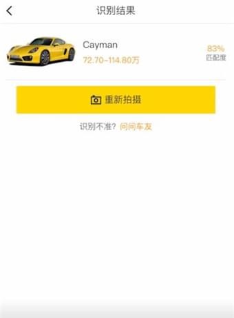 这时将车辆放进黄色的方框中,再点击圆点拍照,等待几秒结果就出现啦。