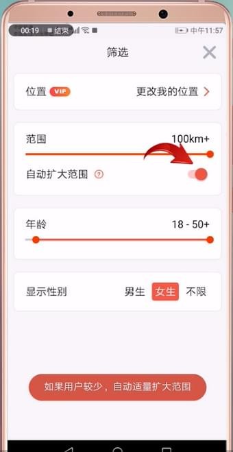 3.如果匹配用户较少,用户还可将【自动扩大范围】开关打开
