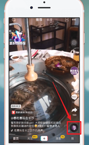 打开抖音,之后,在喜欢的右下方,点击【唱片机图标】;