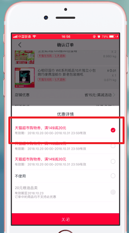 只要订单金额满足优惠券的使用条件,且该宝贝支持使用优惠,在下单结算时就可以看到选择使用优惠券的选项;