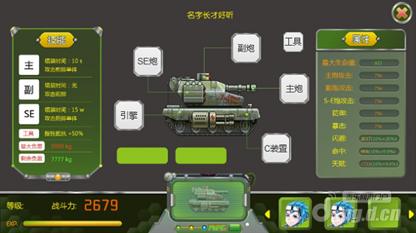 战车装备分为6类:主炮、副炮、SE炮、引擎、C装置、工具