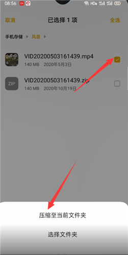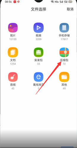 打开手机文件管理,找到要发送出去的文件,点击下方的更多,接着选压缩文件,