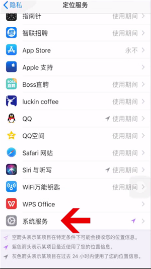 首先打开手机设置,选择隐私选项进入,进入后点击定位服务,滑到底端,找到系统服务进入,