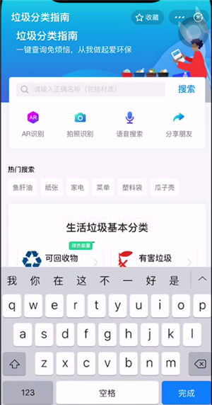 然后点击垃圾分类指南进入页面就可以使用了。