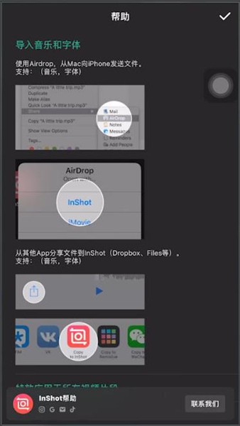 然后可以使用Airdrop,从Mac向iPhone发送歌曲,再从其他APP分享歌曲到inshot即可。