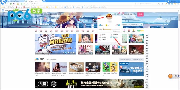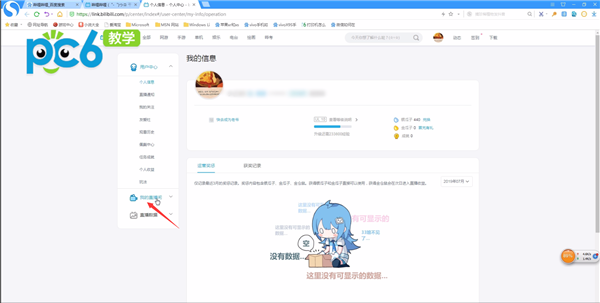 打开哔哩哔哩网页版,将鼠标停留在账号头像上方,点击直播中心,