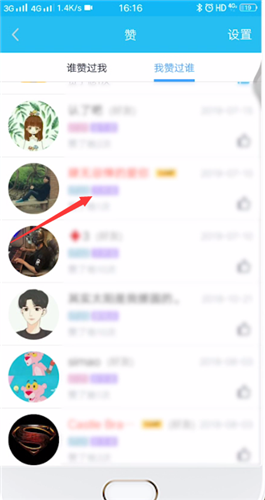 在谁赞过我和我赞过谁里找到要发信息的人,