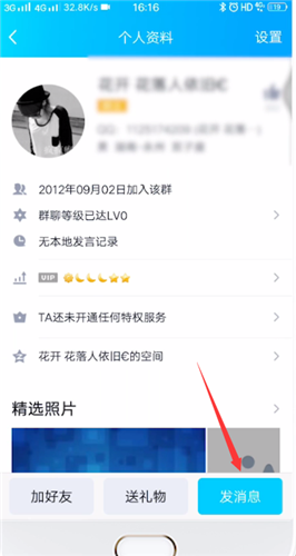 我们在群成员中找到对方,点击对方的头像,就可以发送消息了,