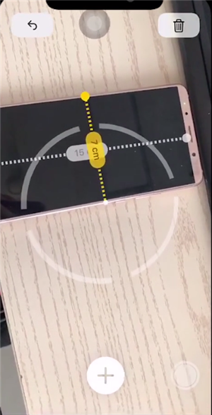 平移镜头至另一端,作为测量的终点,再次点击+号,测量出的结果就是物品的长。以此类推,也可以用同样的方法测量物品宽的尺寸。需要注意的是测量时需要保持镜头保持在一个水水平面,以免造成测量误差。