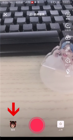 本教程是由华为mate 10 pro手机的Android9版本。首先打开抖音app,然后点击底部加号按钮,进入拍摄页面后点击左下角的道具选项,