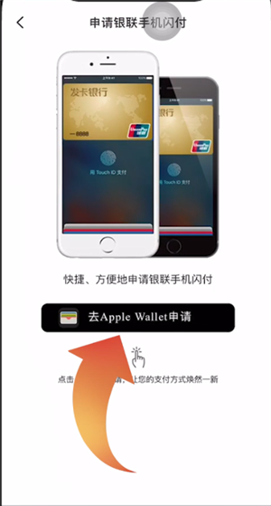 选择好开通手机闪付的银行卡再点击下一步,点击去apple wallet申请,