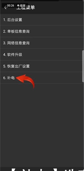 进入工程菜单界面,接着点击【补电】选项,再将手机充电即可。