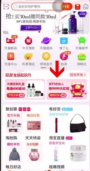 本教程是由苹果xs max手机的ios12版本。首先打开淘宝app,点击首页的双十一合伙人选项,