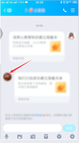 打开手机qq,选择一个已经有闺蜜标识的小伙伴,打开与他的聊天对话框,点击他的头像,