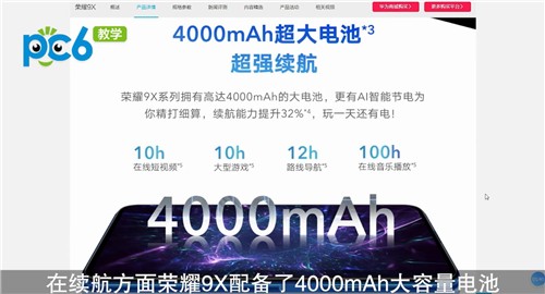 在续航方面,荣耀9X配备了4000mAh大容量电池,比起荣耀8X的3750mAh略大些,续航基本可以满足一天使用。