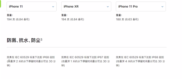 防尘防水等级:由IP67升级到IP68,并且iPhone 11续航提升了6%左右。