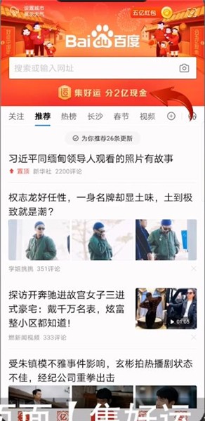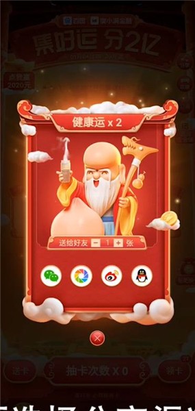 百度稀有卡是可以赠送的,如果你有多余的稀有卡,可以打开【百度】客户端,然后点击首页面【集好运 分2亿现金】,