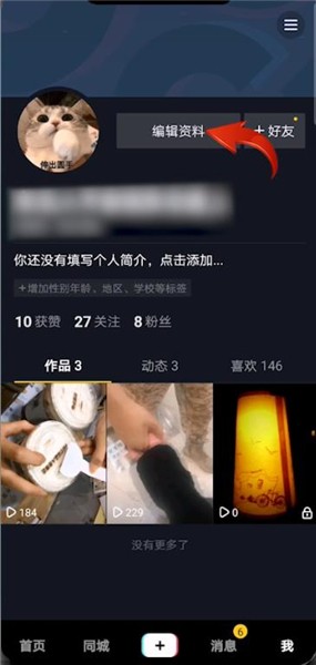 打开【抖音短】客户端,然后点击右下角【我】,接着点击【编辑资料】,