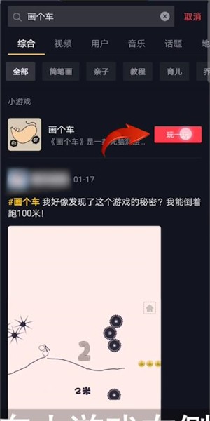 首先打开【抖音短】客户端,然后点击右上角【搜索】图标,搜索“画个车”,接着点击画个车小游戏右侧的【玩一玩】,再完成授权登录,就可以开始游戏了。