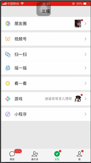 本教程是由苹果6s手机的ios12版本。首先打开微信app,在首页点击菜单栏中的发现,