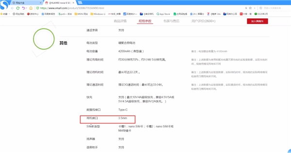 华为nova6se保留了3.5mm的耳机孔设计,虽然充电口采用的是 Type-C接口,但是在手机底部下方还是有3.5mm的耳机孔,华为nova6se还有樱雪晴空、幻夜黑、绮境森林三款配色,后置4800万像素超高清镜头+800万像素超广角镜头+200万像素微距镜头+200万像素景深镜头,电池容量为4200mAh,分辨率为2310x1080 像素摄像头,配备了一款4200mah的大电池,并且还支持40w华为超级快充