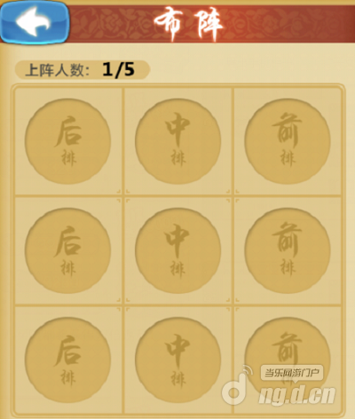 玩家在布阵玩法中可以上阵5名侠客,分别按照不同侠客类型的特点,策略性的排列与九宫格之内,如下图所示: