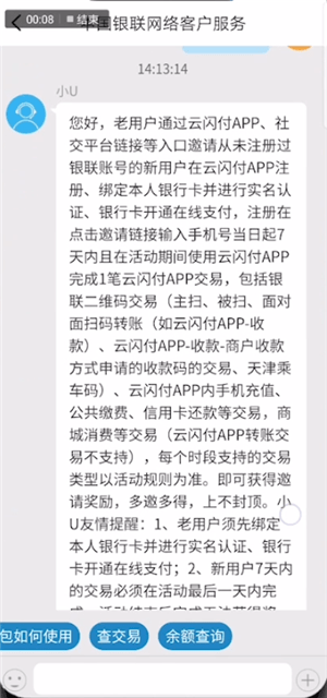 云闪付2019有邀请新用户好友、转账、还款、签到、消费领红包等活动;