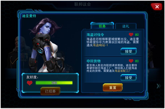 自由联邦—联邦议会大厅;通过完成【迪亚曼特】任务获得【迪亚曼特】对您的好感度进行招募,当然不想这么麻烦的玩家可以通过赠送物品快速获得大量好感度进行招募;