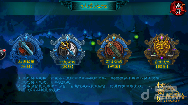 试练之地目前有四个难度(初级、中级、高级、苦难),小编目前菜鸟一个~就先捡软柿子捏捏喽!