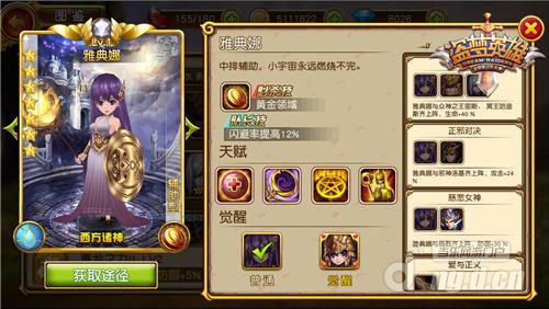 紫色技能增加命中并消除负面状态,全方位提升团队输出能力,对陷入持续性负面状态的英雄有着可观的保护能力。大招为全体友方回复血量并制作护盾抵消下一次伤害。大招奶量相当可观,并且抵消一次伤害,虽然小技能满天飞,可能因此而浪费,但有可能挡下敌方的一个超强伤害。雅典娜的技能可以为团队增加格挡率、命中、免疫负面状态,也有突出的回血能力,是个不错的辅助英雄。