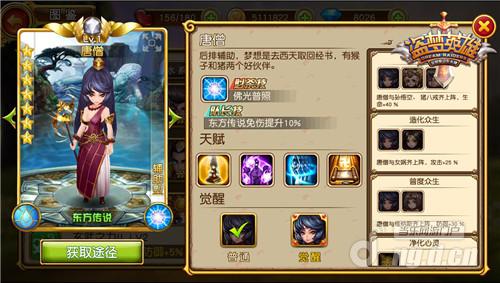 唐僧的绿色技能制造群体护盾,帮助前排英雄英雄抵消伤害。蓝色技能伤害并恐惧目标,打乱对方进攻节奏,增加友军先手能力。紫色技能是唐僧的自保技能,降低仇恨值,直接躲过对方的伤害,从而能够长时间地站在战场上辅助队友。必杀技大范围伤害并且治愈友军,在杀敌之余为友方加血。