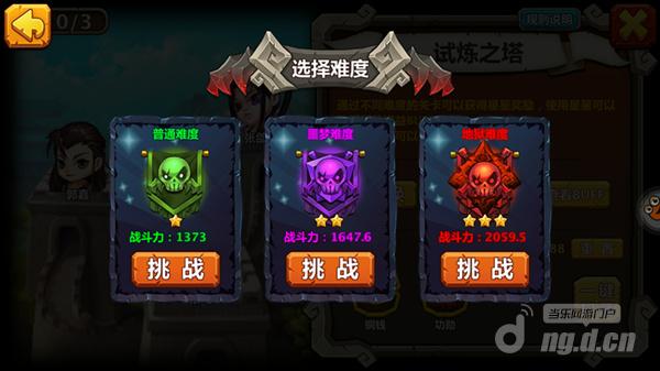 试练之塔沿用PVE副本战斗模式,层数难度,每10层设定一个门槛。每个关卡3个难度分别显示推荐战斗力。玩家通关每1层后弹出选择累计星级的BUFF页面,通过消耗星级数量获得相应BUFF。通关关卡奖励铜钱、主公和武将经验值、战鼓碎片。通关层数奖励元宝,战鼓碎片等。