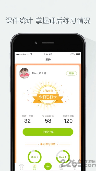 【非学员测试评估】:APP为所有3-12岁学员及非学员提供免费同时方便快捷的在线英语能力测试平台。让家长更准确了解孩子的英语基础水平。
