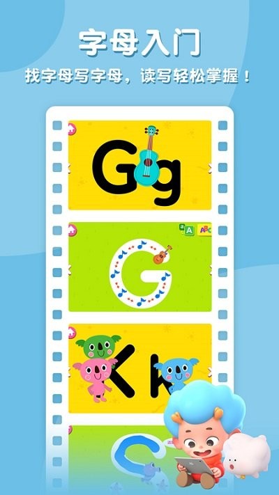 专为小孩子所设计的英语学习平台,有着各个阶段的课程内容,适合不同年龄的孩子学习,激发英语学习兴趣,笔画追踪,帮助孩子更好书写字母,打好英语学习基础,有非常多的欧美经典童谣,让孩子在最纯正的英语课堂上进行学习。