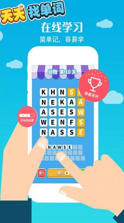 这是一个很好用的英语学习平台,专门为学习英语的用户打造,在平台上面有很多的实用方法可以帮助你进行记忆,让学习英语更加的简单,记忆更多的单词。随时可以手机在线学习单词,有任何不懂的生词都可以在线搜索,可以了解单词意思。