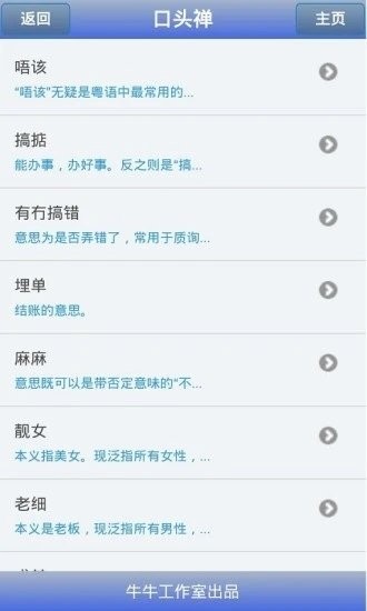 牛牛粤语是专业的粤语学习软件,支持离线使用,无需上网零流量。牛牛粤语特有的真人录音及逐字发音两种放音模式,真人录音特聘专业录音人士录音,清晰悦耳、地道纯正。