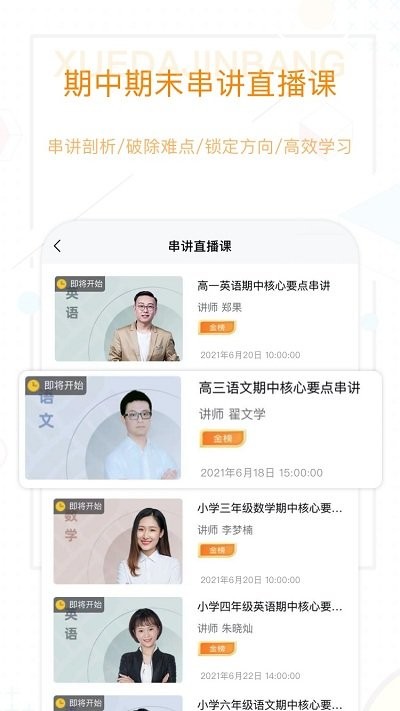 大咖+新语强化讲座,涵盖小学、初中、高中精选专题,期末现场直播;
