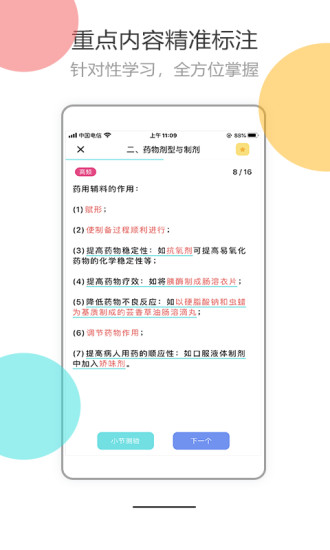 "确保做一道题会一类题".小节测验中的每道题都是经过精炼,相同内容只保留一道试题,多选题各选项相关考点都可查看,练一题可巩固各相关考点,触类旁通.