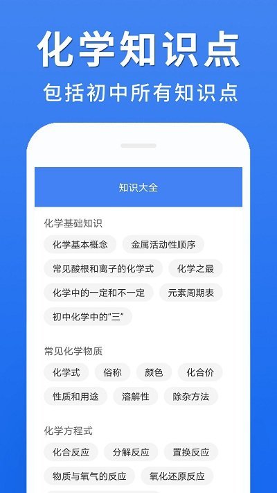 初中化学大全app是一款教育学习软件,软件专注为初中生打造,在这里涵盖了初中的各种化学知识内容和资源,用户可以通过软件自由查阅,各种详细的初中化学知识都免费提供,为你解答更多学习中的化学难题,感兴趣的朋友快来下载吧!