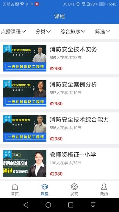 ·用户在软件中能够通过各种条件来对课程筛选排序,方便快捷