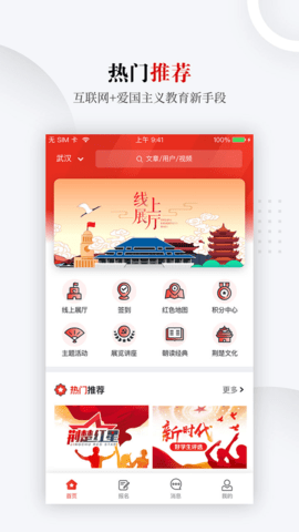 荆楚红app充分运用湖北省作为中国近现代革命重要策源地的文化历史背景,依靠中国领导人在革命和战争时期建树丰功伟绩所形成的纪念地、标志物为载体,打造以“互联网+爱国主义教育基地”为线上活动、用户交流、数据采集平台,组织用户开展缅怀学习、线上线下参观游览的主题性教育宣传活动。这款App有着专业的热门推荐,还可以看到红色的地图,各种爱国主义教育基地集中展示。