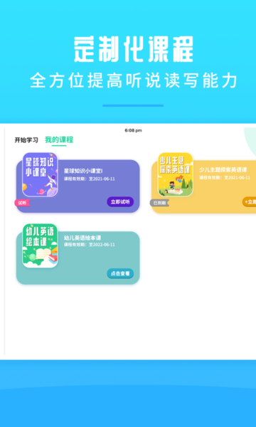 英语喵hd软件是一款能够为同学们提供专业北美外教的英语学习客户端。在这里,同学可以根据个人的具体情况,定制专属的课程学习,超高的性价比,用户完全不用担心课程费用会很高,有针对性地提高听说读写的能力,进阶式的学习,高效的提分,快来专属于吧!