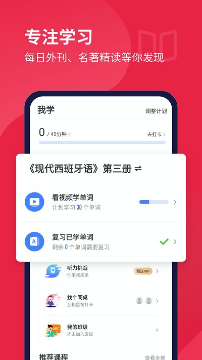 - 兴趣学习:有声读物、名人演讲、公开课、影视英语等丰富西语资源。